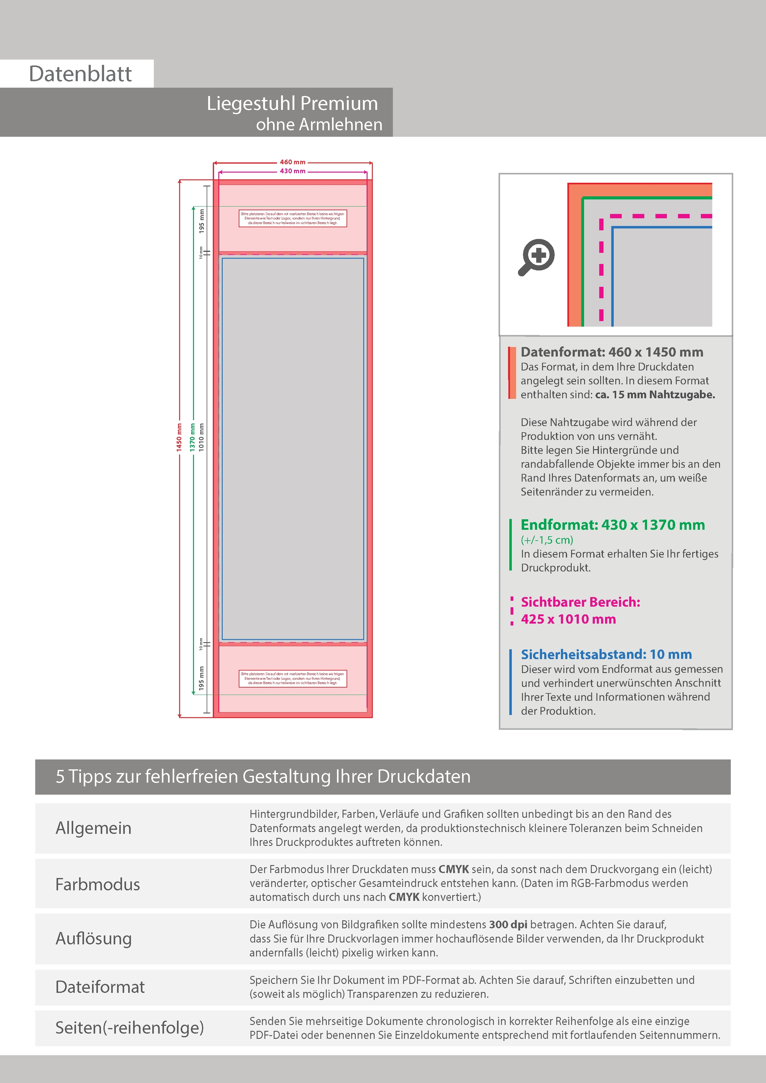 Hochwertiger Liegestuhl Premium ohne Armlehnen, Liegenbezug 4-farbig bedruckt