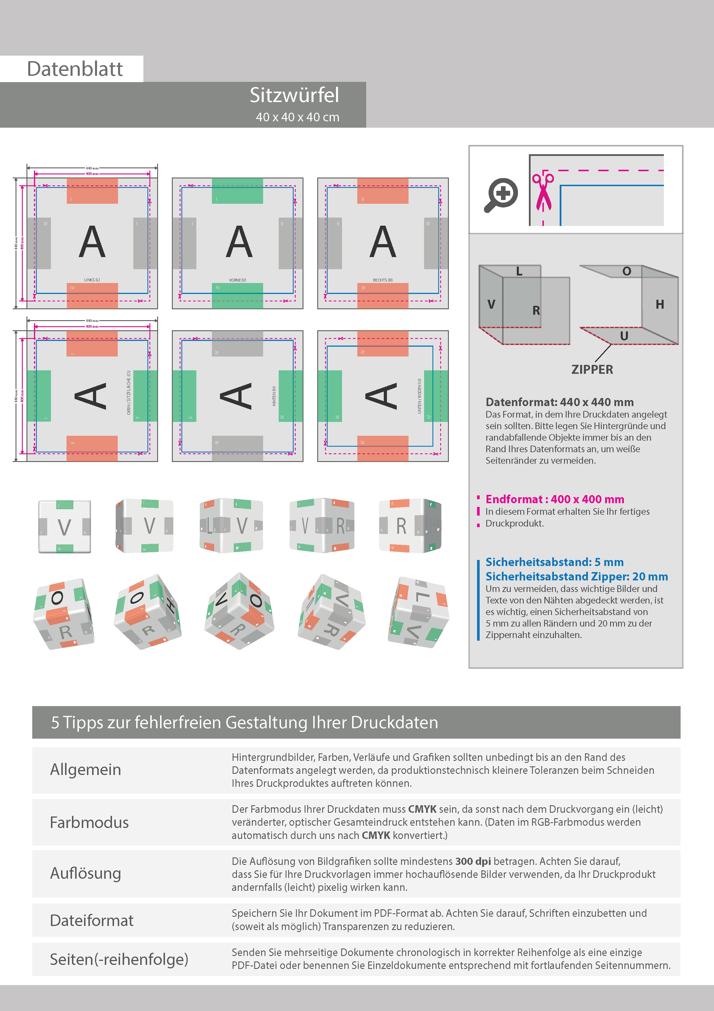 Wechselbezug für Outdoor Sitzwürfel Cube 40, komplett vollflächig 4-farbig bedruckt